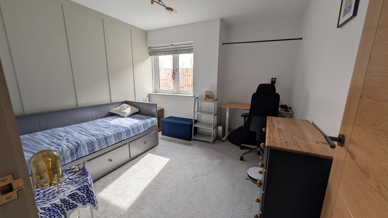 There is a shed to store bikes. There is currently an IKEA guest bed that becomes a King Size when open and a desk. Plenty of on street parking available. I also have an electric car charge if needed (for an extra charge).