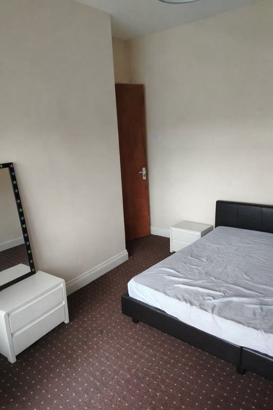 The available room is a bright and spacious double bedroom, fully furnished with a bed, wardrobe, chest of drawers, and plenty of natural light from large windows. It offers a clean, simple space that’s easy to make your own.
