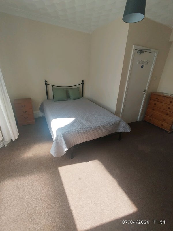 This LARGE GROUND FLOOR double room benefits from a double bed, new comfy mattress, wardrobe, chest of drawers and bedside cabinet, tub chair.