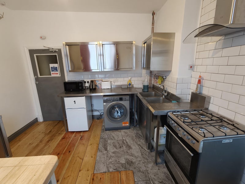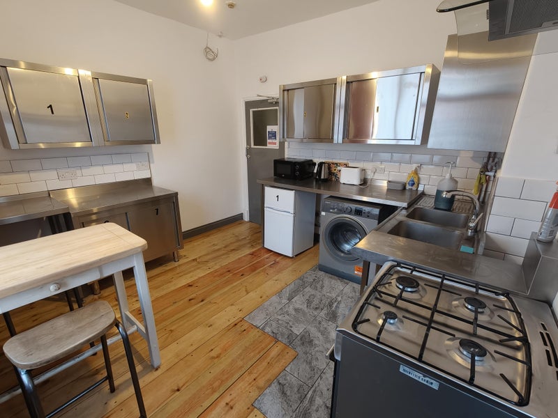 The shared kitchen is equipped with an electric cooker, washing machine, microwave oven and kettle.