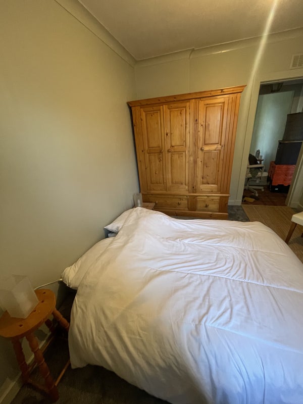 Your Room: A freshly decorated double bedroom with a brand-new carpet , wood furniture, and a bright, south-facing window. Furnished with a king bed (bed frame yet to be installed but will be in for your arrival) and standard storage (large wardrobe, chest of drawers as well as small desk space.