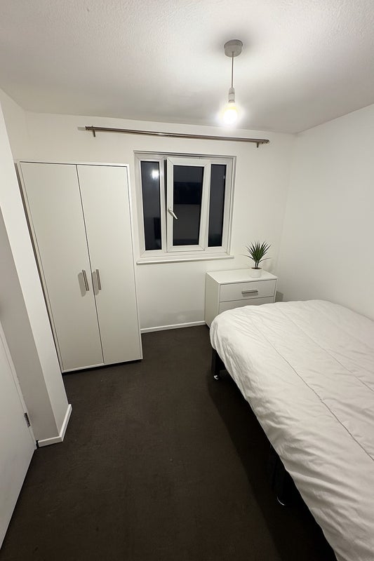 The room comes furnished with bed, mattress furniture and carpet. Furniture includes a wardrobe chest of drawers and a bed side unit