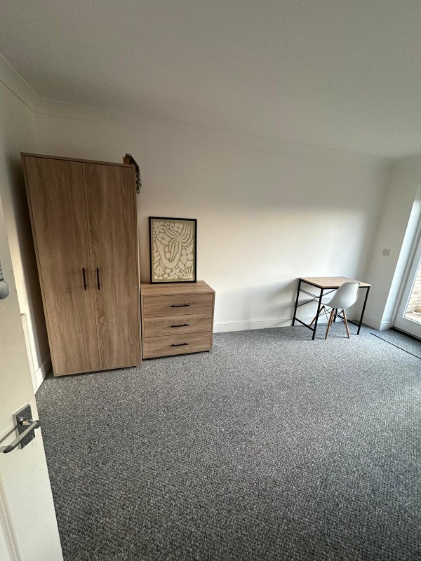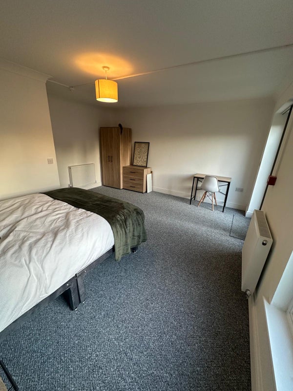 ✔️ Fully furnished: double bed, 2 wardrobes, chest of drawers, bedside table, desk & full‑length mirror