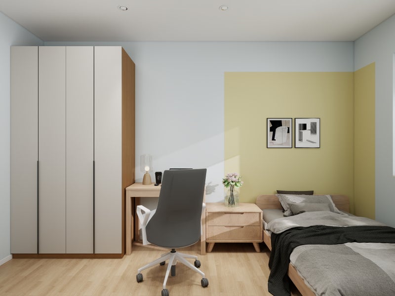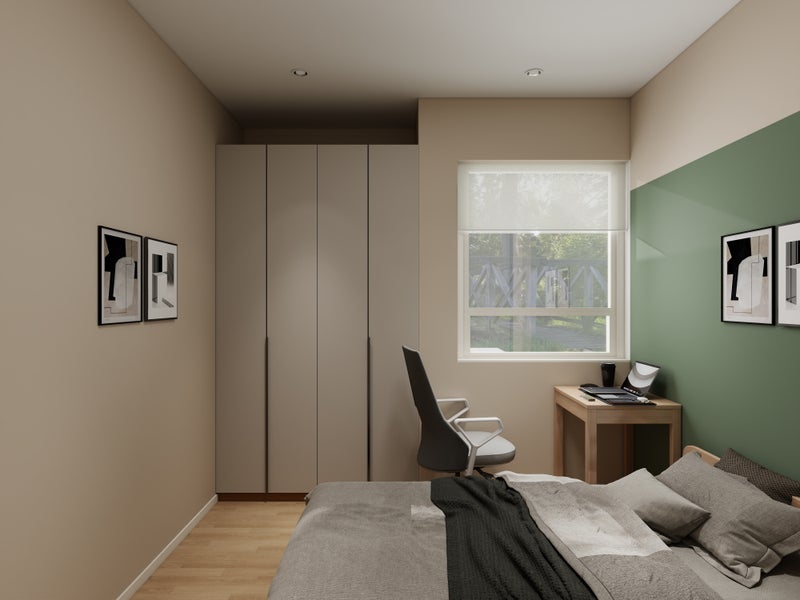 - Spacious double en-suite rooms with sleek floor-to-ceiling tiling, electric towel radiators, and custom fitted wardrobes.