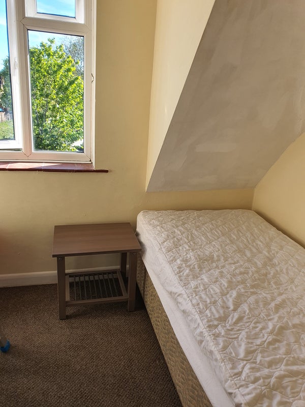 Cosy single room with lovely view. The flat is 2 mins walk to Farncombe station. Bathroom with bath and shower over. Large sitting room and separate kitchen. There is a balcony/ terrace with view over the railway. Bills included.