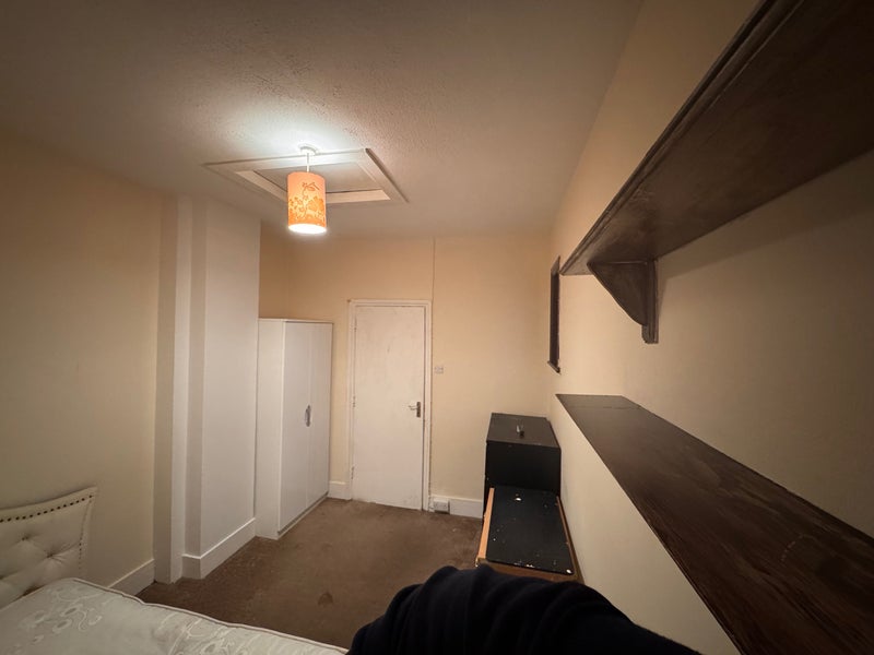 The room is located on the ground floor where the kitchen, a big bathroom and the rear garden are. The rest of the rooms are on the first floor and underground floor. The room is very spacious with double bed, desk, two wardrobes and fireplace with shelf above it and usable space for storage. Additional funniture like drawers is available for the room.