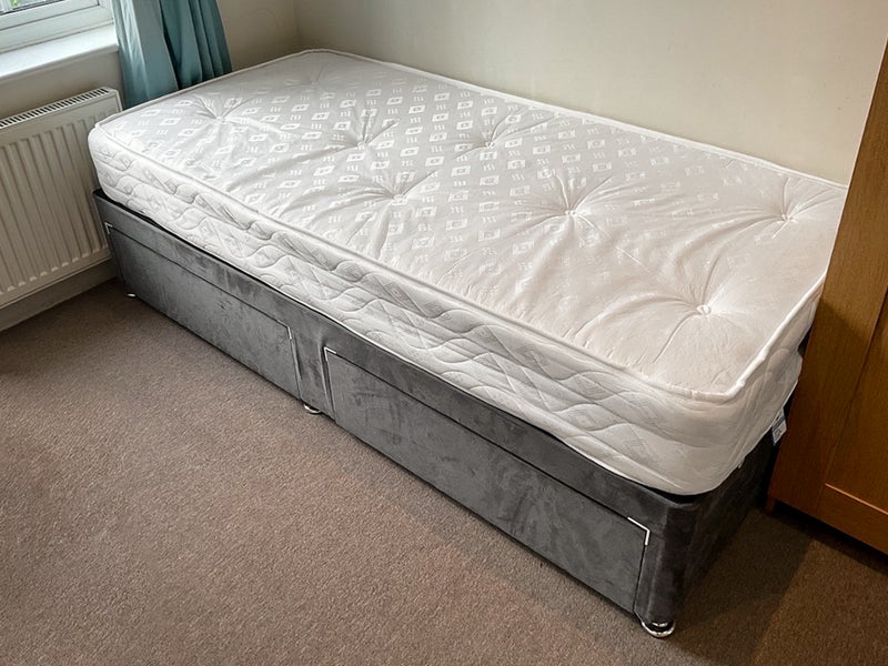 Your bedroom has plenty of storage with a wardrobe plus chest of drawers. At present there is a single bed. However a double bed can be supplied upon request.