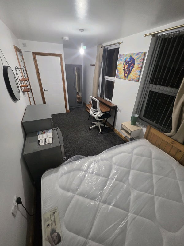 • 🛏️ Fully furnished (bed, wardrobe, desk, blackout blinds)brand new orthapedic mattetess