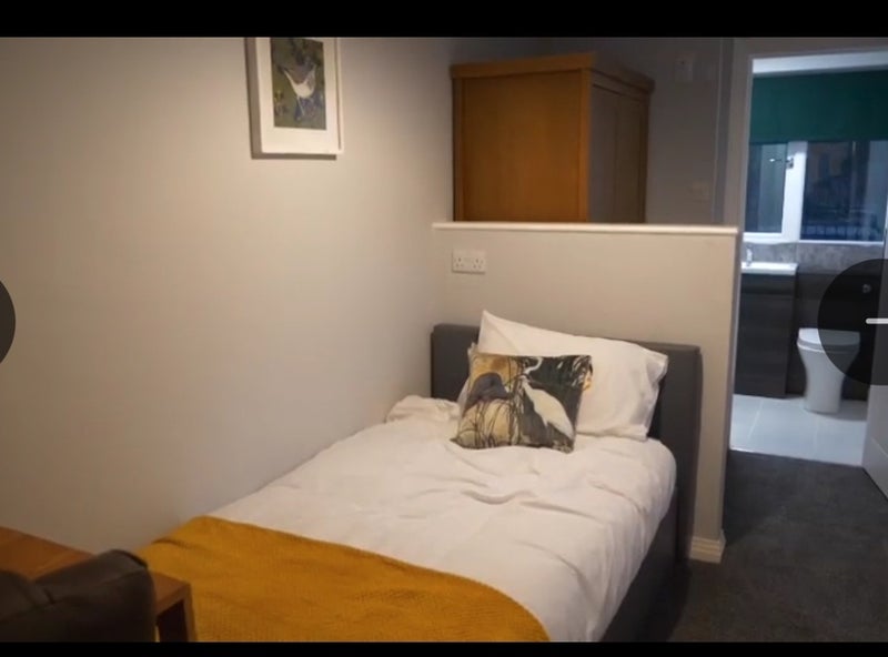 The room includes a private ensuite shower room, and storage is thoughtfully maximised with a large wardrobe and a gas-lift bed, providing generous hidden storage space beneath. A fold-down desk is also included, making it ideal for working or studying without compromising on space.
