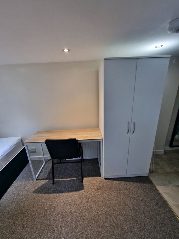 Fully furnished... You get a single bed, wardrobe, desk and chair.