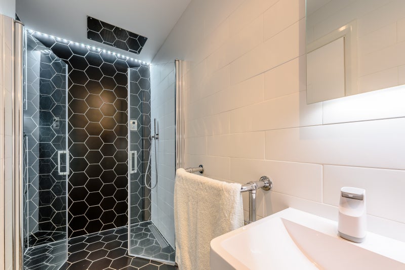 • Fully tiled modern bathroom