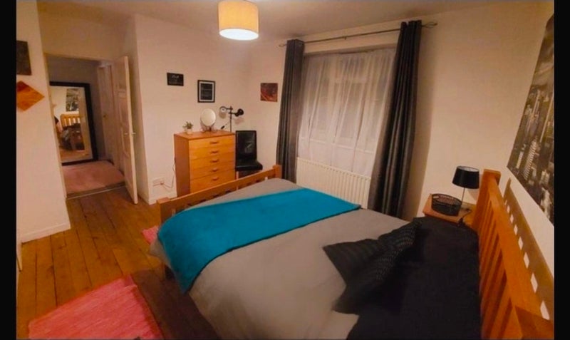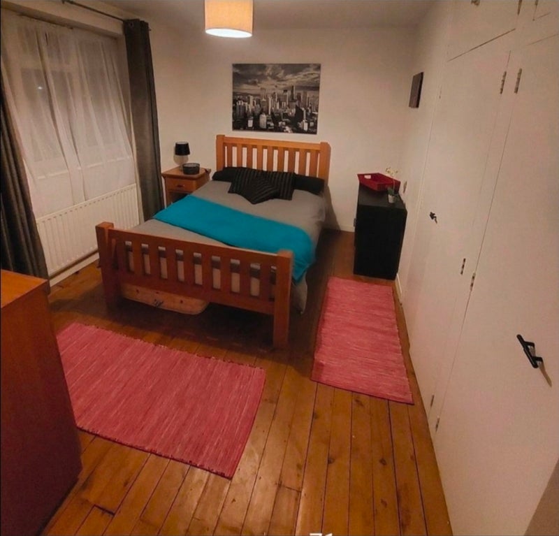 Fully furnished with a double bed, (+bedding), memory foam mattress, chest of drawers, bedside cabinet and table lamp.