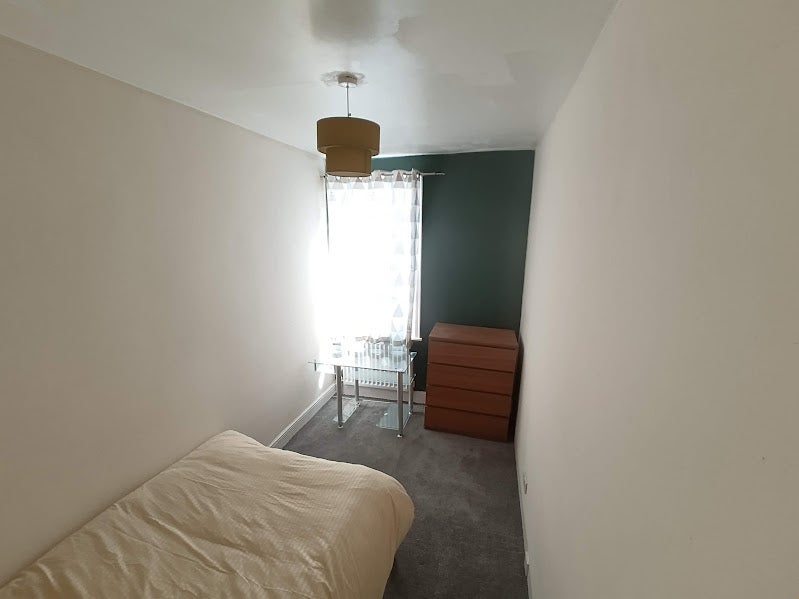 Furnished as required, currently there is a bed, desk and drawers, and a large built in wardrobe,