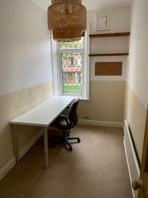 Lovely double room + separate office available in a spacious semi detached house in the excellent community village of Farsley.
