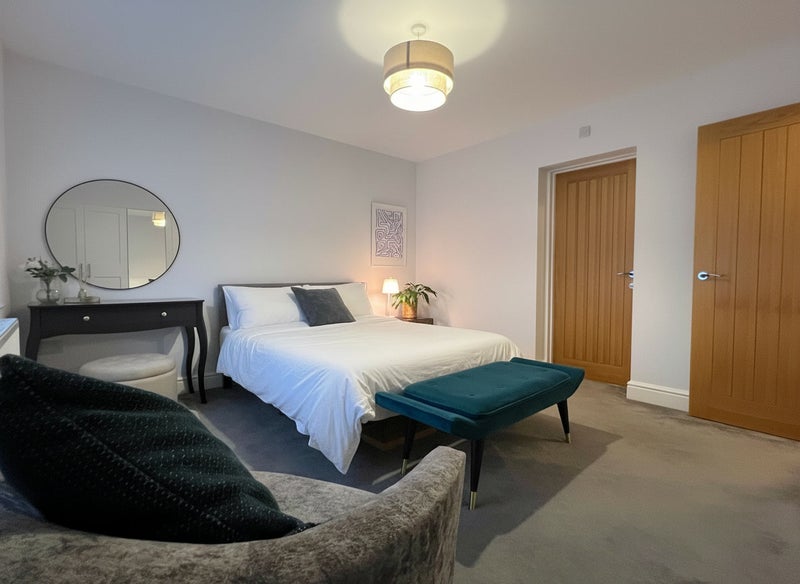 Room 2 is a larger king size room with an ensuite bathroom, large wardrobes, bedside tables, lamp and lockable bedroom door. There is no desk in this room, however one can be arranged if needed.