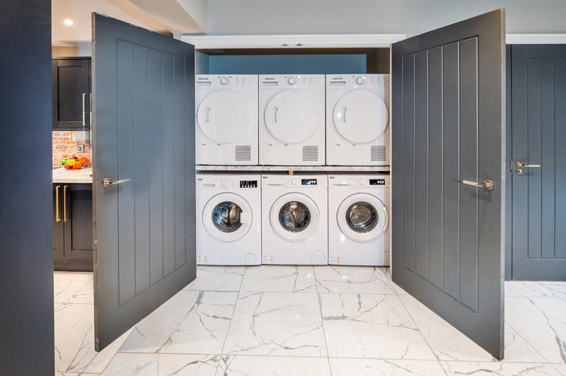 There is a large utility cupboard built in the back wall of the communal which has 3 washing machines and 2 dryers. All tenants have full use of these however rooms 1,4,5 are the only rooms without their own.