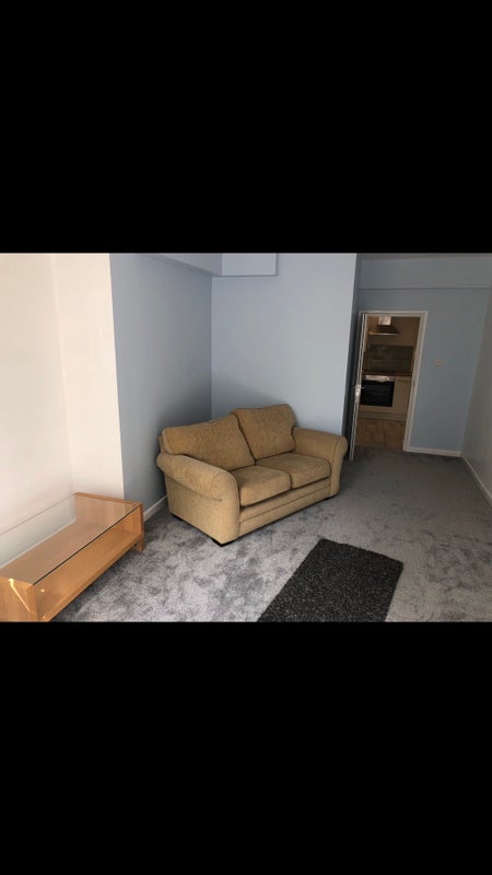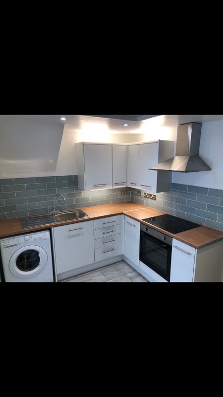 Through to separate kitchen consisting of new white gloss units, oven, hob, hi line fridge freezer and washing machine. Through to the large double bedroom which is newly refurbished has central heating radiator and plenty of new electric points.