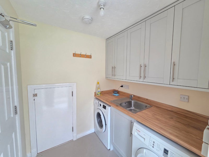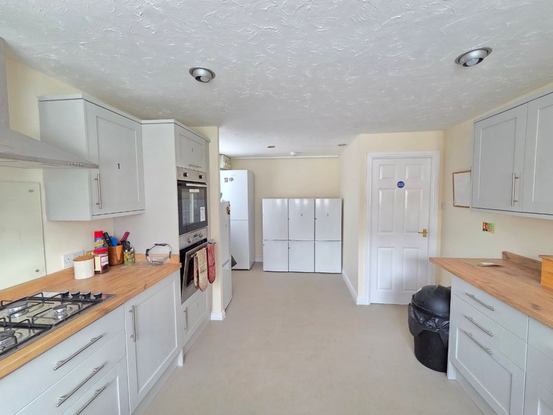 The property benefits from a generous communal kitchen, featuring ample storage with allocated cupboard space for each tenant. Each room also has its own dedicated fridge/freezer for added convenience. A separate utility area is located just off the kitchen and includes a washing machine and tumble dryer.